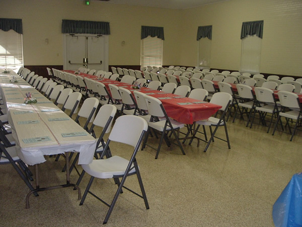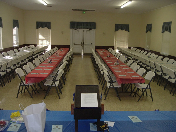 Pictured below is the setup for the special meeting in July. Comfortably seating is arranged for 144 members & visitors around 18 tables. An addition 2 head tables seated 8 more.